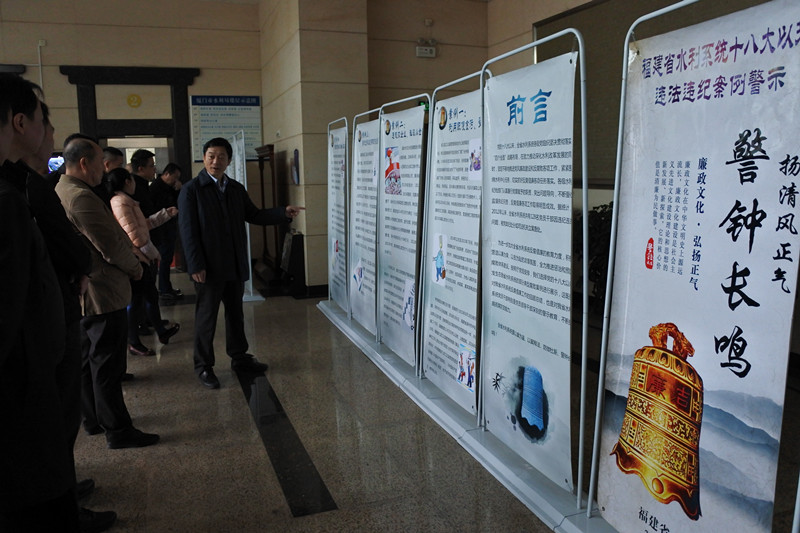 2月27日至3月3日,我局在一楼大厅举行全省水利系统十八大以来违法违纪警示案例巡回展。此次展览由省水利厅主办、我局承办,精心收集了十八大以来全省水利系统发生部分典型腐败案例进行展示,这既是对全省水利系统反腐倡廉工作的回顾总结,也是对全省水利系统党员干部特别是党员领导干部深刻的警示教育。2月28日上午,局党组书记、局长郭金炼带领局机关、局直属单位部分党员干部参观展览,并要求我市水利系统以此为契机,积极推进廉政文化建设,通过以案释法、以案为鉴等形式,用身边事教育身边人,营造以廉为荣、以贪为耻的浓郁氛围,让党员干部防微杜渐、警钟长鸣,筑牢不敢腐、不能腐、不想腐思想堤坝。(组织人事处、监察室供稿)